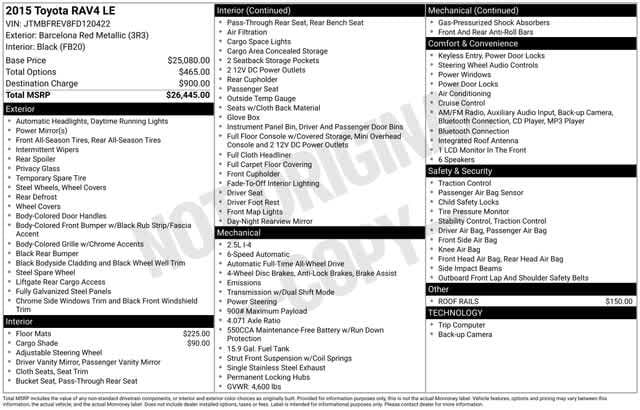 EPA 29 MPG Hwy/22 MPG City! LE trim, Barcelona Red Metallic exterior and BLACK interior. CD Player, Bluetooth®, iPod/MP3 Input, Back-Up Camera, All Wheel Drive.